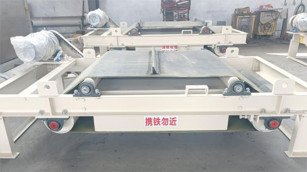除铁器安装方式安装位置选择要空间宽敞,便于除铁器调动和吊装,便于除铁器缷铁和清除,便于轨道安装和固定,安装方式分倾斜、水平两种,它们均与除铁器定位在输料带的某个