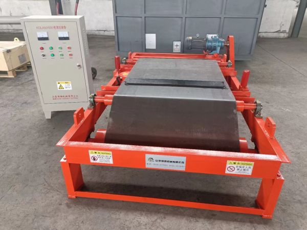 输送带自卸式除铁器产品特点输送带自卸式除铁器内部采用高矫顽力,高剩磁堪称磁王的钕铁硼等材料组成复合磁系一具有磁 场强、寿命长、体积小、安装方便。输送带永磁自卸式