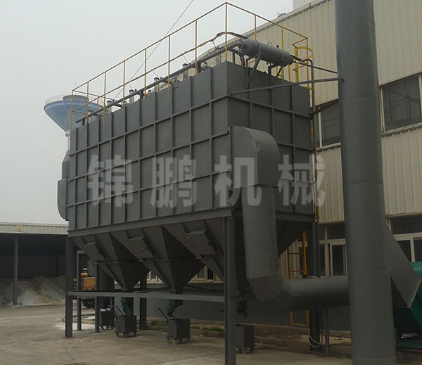 含尘气体经进气口进入除尘器,较大颗粒的粉尘直接落入灰斗,含有微粒粉尘的气体通过滤袋,粉尘被滞留在滤袋外表面,而气体则经净化后由引风机排入大气。