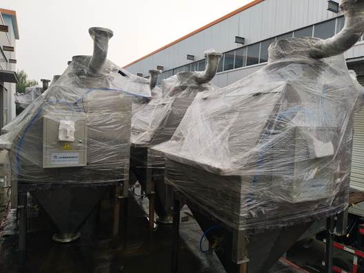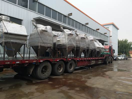 2018年10月18日,小雨。江苏淮安某化工集团订购的我公司11台304不锈钢材质大、小袋一体拆袋卸料器经过车间师傅们一个多月的精雕细磨终于装车发货!